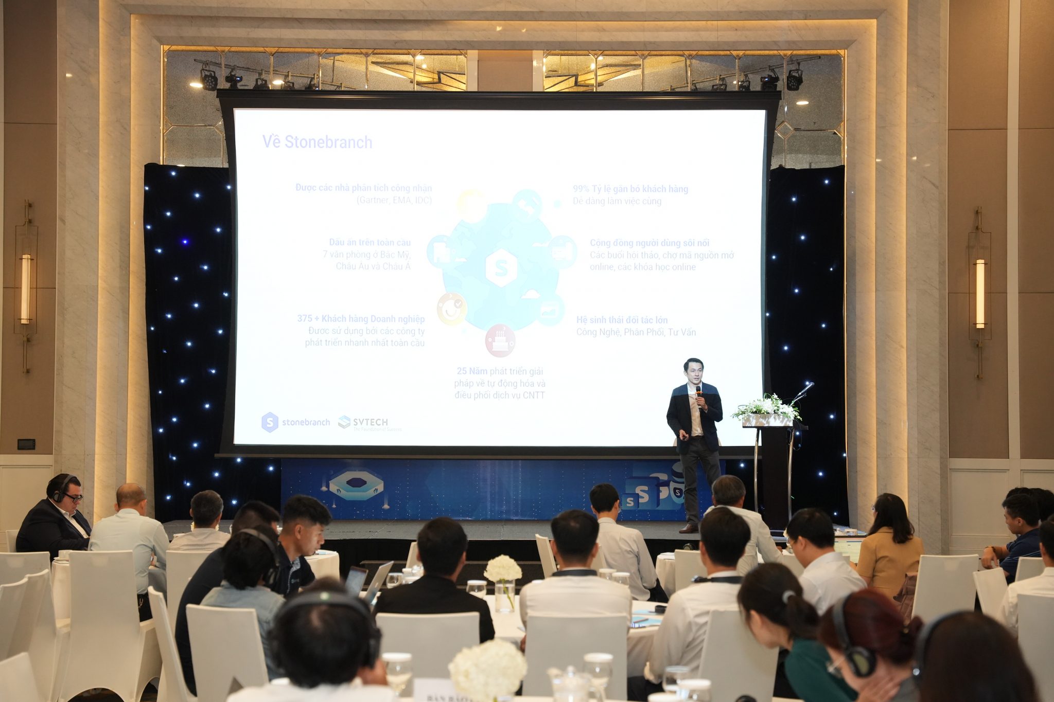 On October 17, SVTECH, in collaboration with Stonebranch, hosted the seminar “Core Banking System Orchestration and Automation,” bringing together executives and IT experts from leading banks across Vietnam. The event delivered the latest insights into automation solutions and optimization of End-of-Day Close (COB) processes within core banking systems, contributing to improved operational efficiency and sustainable development.